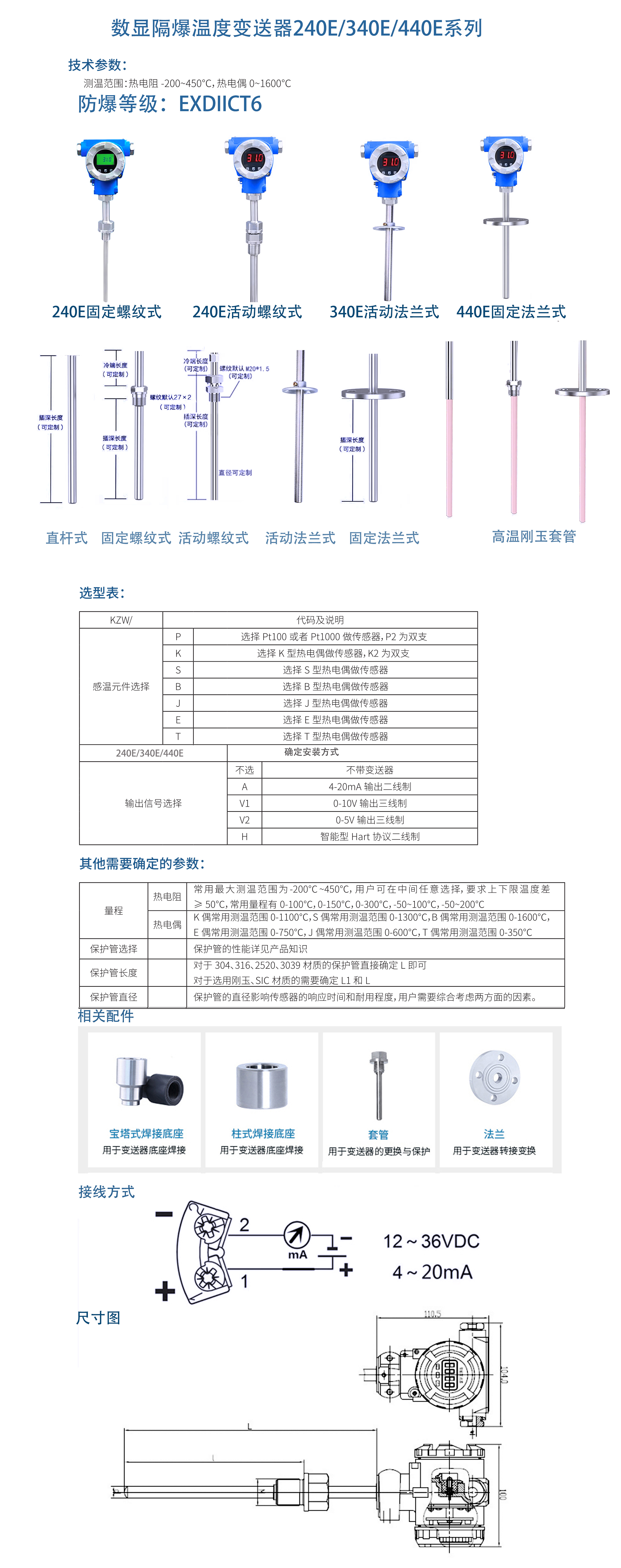 KZW/P2\3\440螺纹法兰隔爆温度传感器