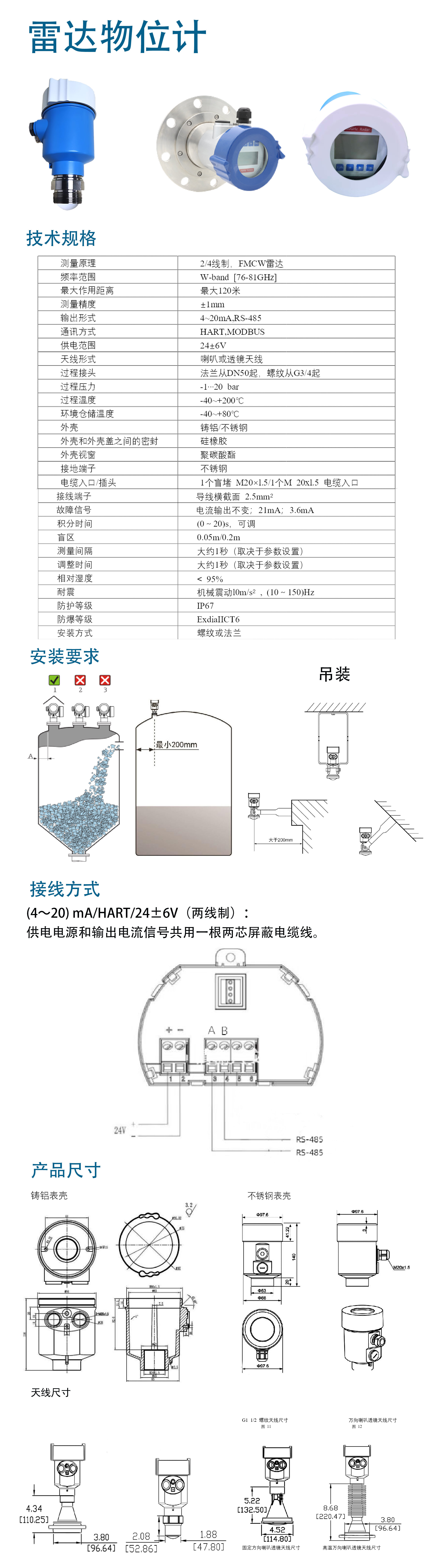 2. 更小的天线尺寸,满足更多的工况场合测量。