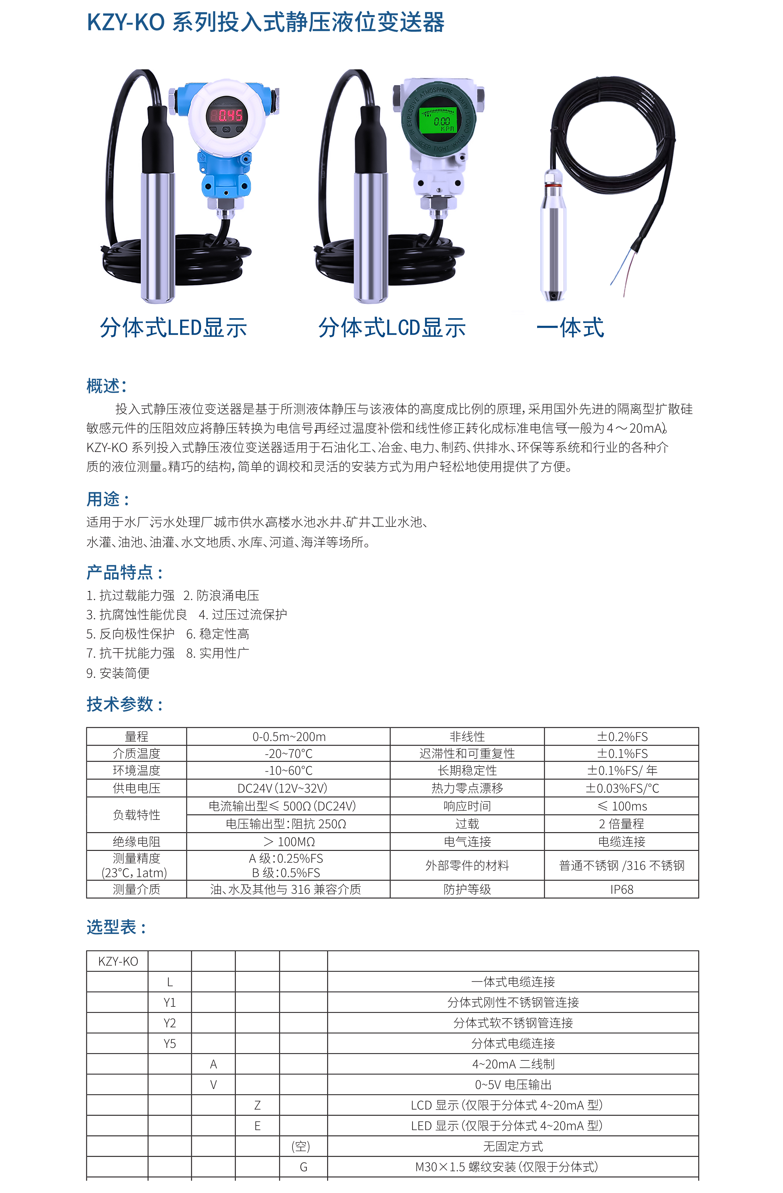 KZY-K静压液位变送器(投入式)