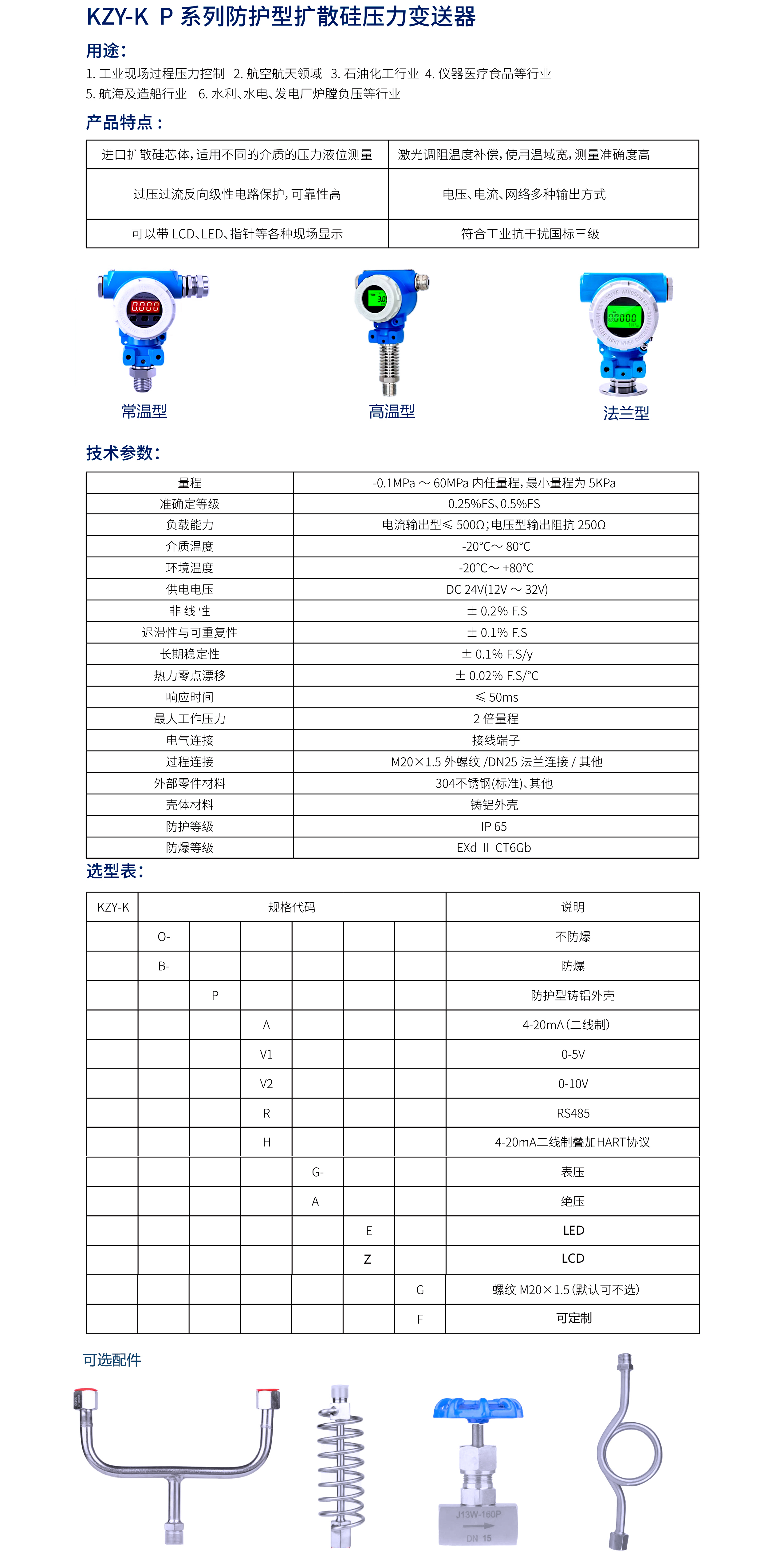 KZY-KB防爆防护高低温数显压力变送器